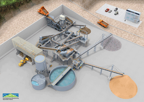 This facility consists of a crushing line producing regular aggregates from mountain rocks; a sand line producing sands for ready-mixed concrete by processing stone powder generated from the crushing line; and a water treatment line purifying slurry-included waste water generated from the sand line for reuse.