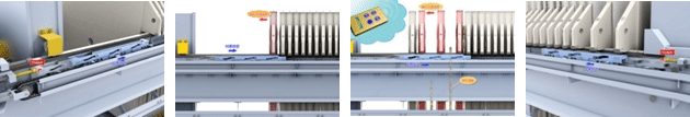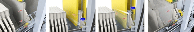 | Instead of conventional ratchets, conveyors are employed to reduce processing time by two to four times. Also, as the unit can be radio controlled, it is convenient for cake separation and maintenance. |
