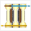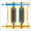 When they make a contact, they have empty space as shown in the picture. When all the filter plates stick to each other closely, slurry feeding is ready and the slurry feeding pump starts running. |